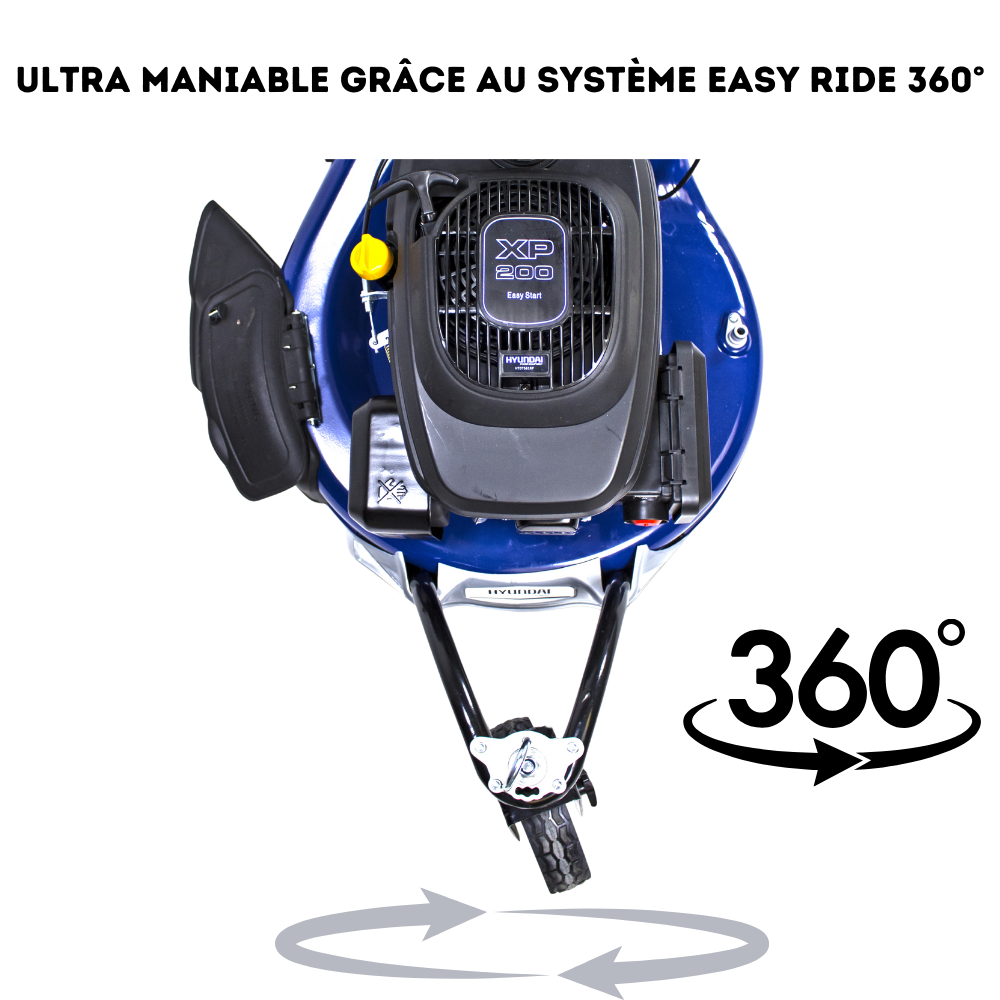 Avec son puissant moteur 4T, la tondeuse à essence HTDT561RP-1 Hyundai réalise des performances très convaincantes sur les grands jardins.